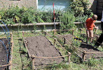 Laatste oogst uit de schoolmoestuin en bloemen geplant voor de zomervakantie.