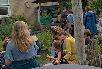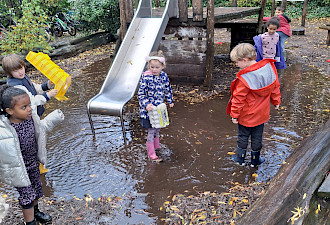 Regenpret op het plein: laarzen aan en samen lekker stampen in de plassen!