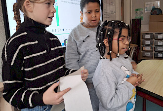 Groep 5/6 oefent presenteren met Blink en sluit af met een vrolijke spelshow.