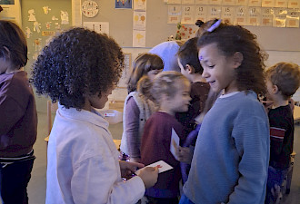 Kleuters delen wat ze leuk vinden met spelen en aantrekken tijdens Mix en Ruil.