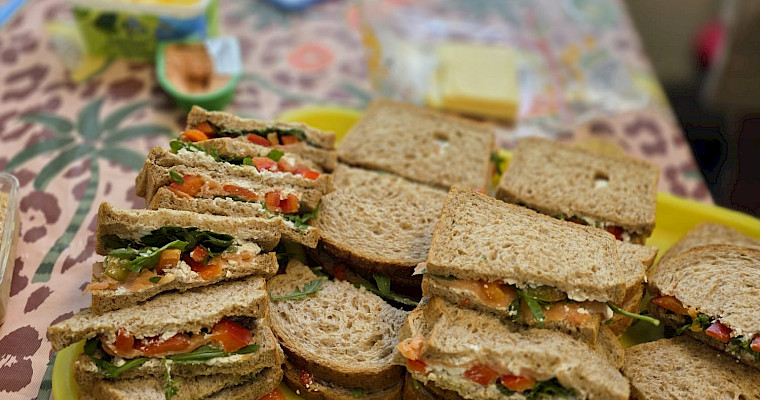 Tijdens de gezonde schoollunch genieten de kinderen van een heerlijke sandwich met zalm. Zo ontdekken ze hoe lekker en voedzaam gezond eten kan zijn!