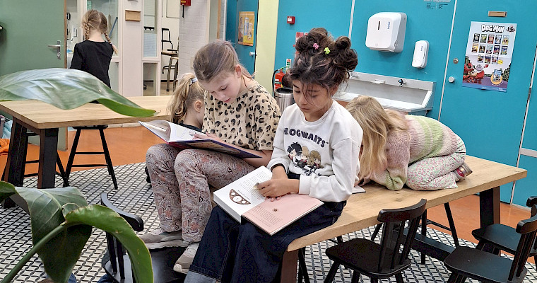 Tijdens de Kinderboekenweek klinkt het leesalarm. Zodra het alarm afgaat, stopt iedereen waar hij mee bezig is en de hele school leest tegelijk een boek!